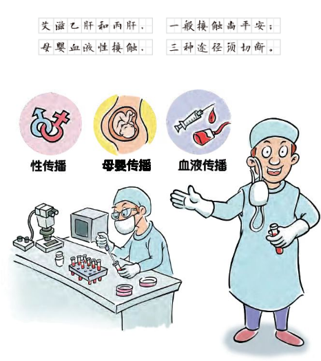 艾滋病病毒、乙肝病毒和丙肝病毒主要通过血液、性接触和母婴途径传播。血液传播是指含有病毒的血液经破损的皮肤、黏膜暴露而传播,或含有病毒的血液通过输血或者血液制品而传播。与感染者共用针头和针具、输人感染者的血液或血成分、移植感染者的组织或器官可造成传播;与感染者共用剃须刀和牙刷、文身和针刺也可能引起传播。性接触传播是指(异性或同性)无防护性行为引起的传播,不使用安全套的性行为会因生殖体液的接触而传播。母婴传播是指感染病毒的母亲经胎盘或分娩将病毒传给胎儿,也可以通过哺乳传给婴儿。