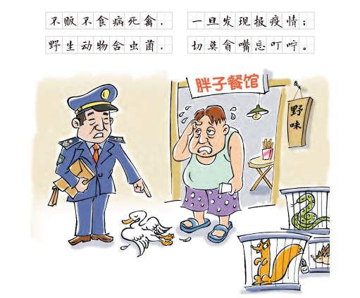 发现病死禽畜要报告,不加工、不食用病死禽畜,不食用野生动物。