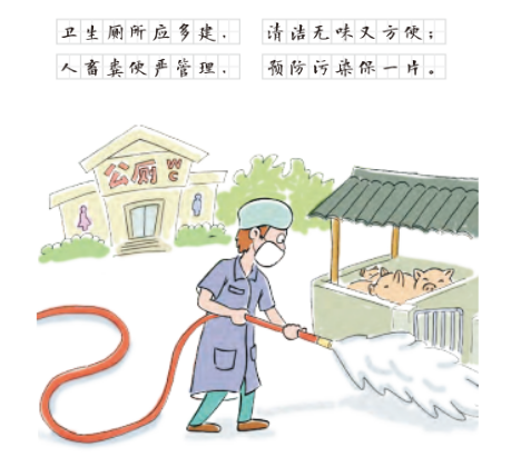 农村使用卫生厕所,管理好人畜粪便。