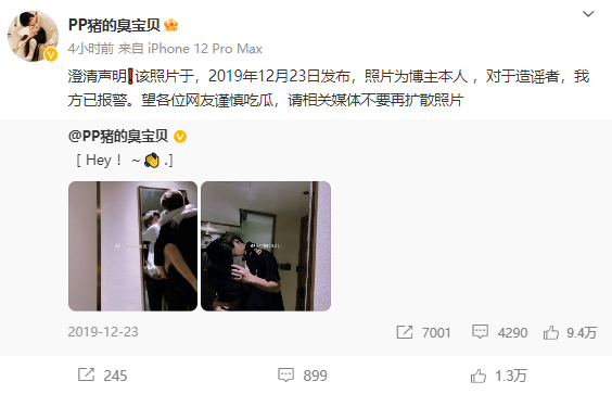 有网友扒出狗仔爆料的照片是另一对情侣博主的照片,该博主曾在19年晒过这张亲密照片。该博主也发出澄清声明,表示照片为本人。