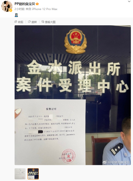 随后,该博主发文称已报警,并且还晒出了报警证明。