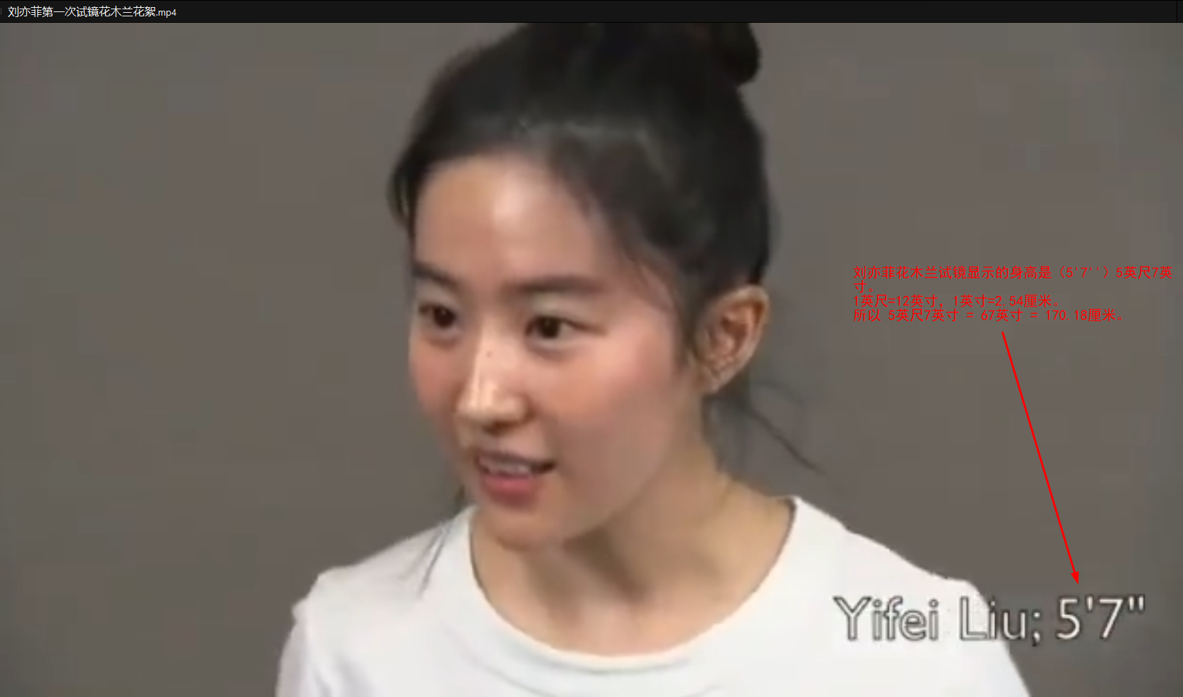 刘亦菲百度百科写的身高一米七刘亦菲第一次试镜花木兰花絮视频: