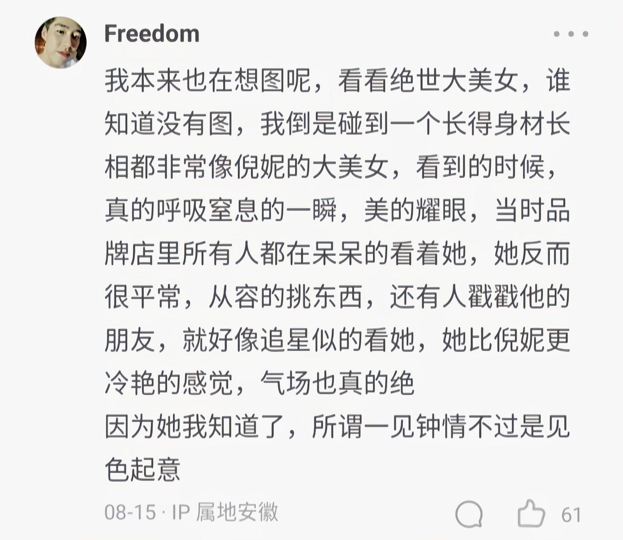 可能我运气好,见过的漂亮女人太多,有偶遇的,有工作往来认识的。都极其美艳出众,可以轻易把她比下去。所以不用怀疑我的审美,因为我有更高的眼光。下图,可对此做一些必要的补充。