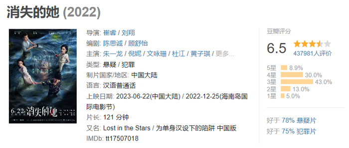 有部分观众认为,《消失的她》的剧情细致,充满反转,演员也演技在线,是一部出色的佳作。