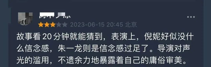 目前,豆瓣开分时的7.5已经跌到了6.5,43万评分观众中,43%打出了3星的中评,仅有9%给出5星好评。不少女性观众看完,义愤填膺。