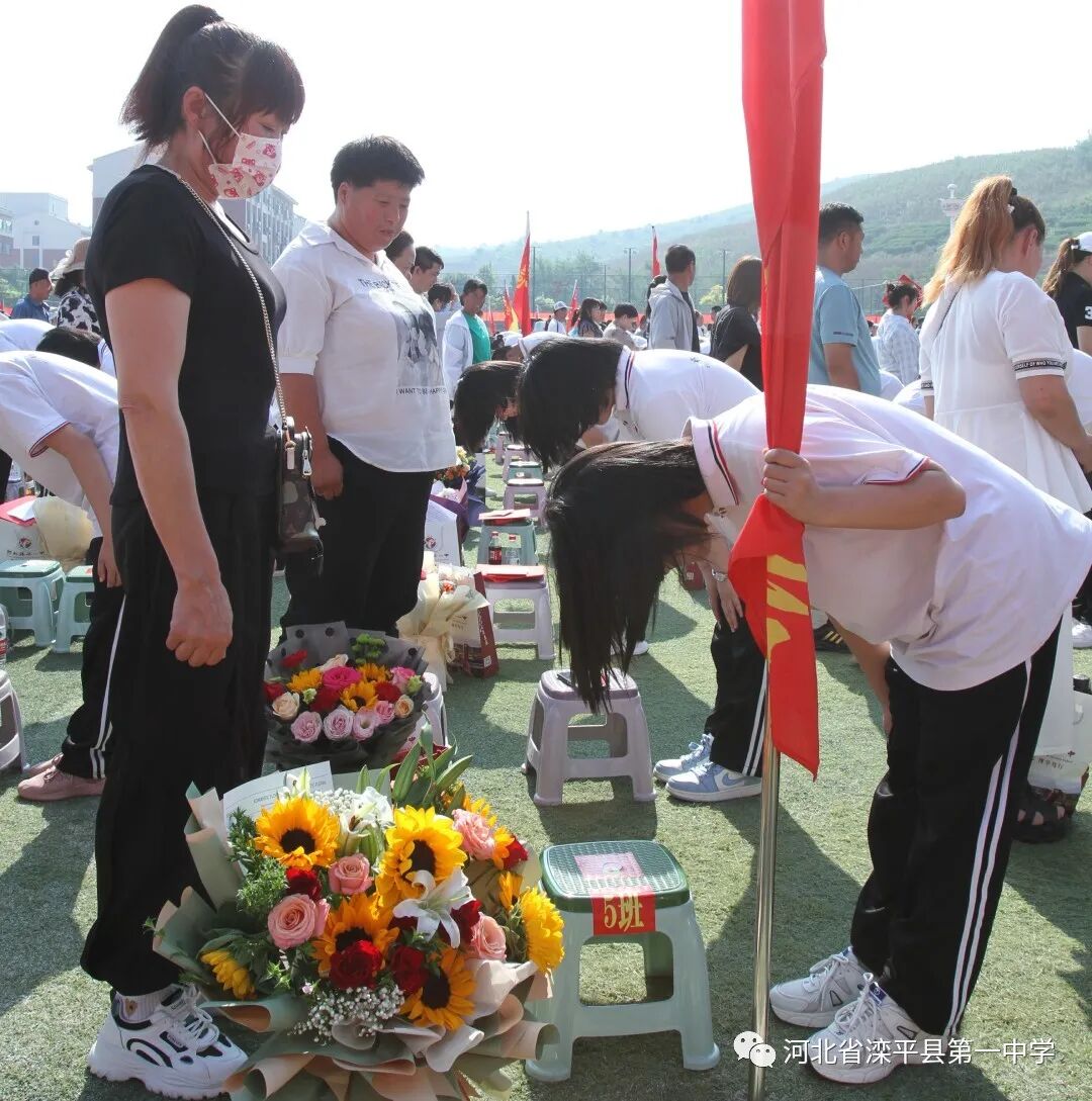 全体高二年级爱拼搏们向父母、老师、祖国三次鞠躬。斗转星移十八载,日月难抹父母恩;一朝冠礼和笄礼,勿负旧恩与国望,十八而志,大任始承,十八而志,善行担当;十八而志,责任以行,十八而志,筑梦青春。