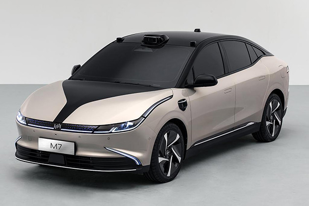 威马将在本届广州车展中带来了旗下首款轿车:威马M7。新车外观保留了Maven概念车大部分设计,带灯语的大灯系统颇有科技感。威马M7最大的亮点是搭载3颗自主变焦高精超视激光雷达,能够根据不同智能驾驶场景对环境感知的不同侧重,任意改变横向和纵向扫描速度,实现动态调节帧率和分辨率。此外还有5个毫米波雷达,12个超声波雷达,7个800万像素超高清摄像头和4个200万像素高清环视摄像头,同时还搭载了NVIDIA DRIV Orin-X自动驾驶芯片。该车将年轻一代喜爱的可穿戴设备移入车内,搭载全球首创的i-Surf科技皮肤能够更好地与用户进行“交流”,还有i-Rota超级表盘采用“智能手表”表盘式设计,内含丰富微表情。新车将搭载威马第三代Living Motion三电动能系统,可将百公里电耗控制在14kWh/100km以内,NEDC综合续航里程将大于700km。