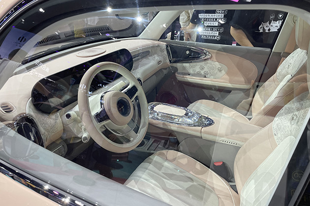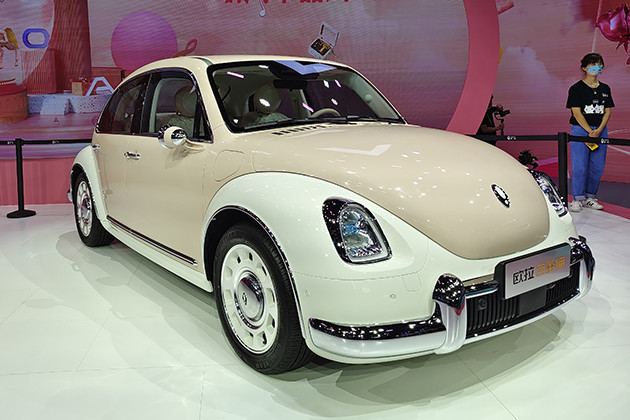 在本届广州车展中,欧拉品牌将为我们带来芭蕾猫量产版,这是一款走经典复古路线的紧凑型电动车。新车的设计灵感来自经典甲壳虫车型,造型十分复古。芭蕾猫车身采用辨识度极高的粉红色配色,显然是瞄准了广大女性消费群体。另外,新车还在翼子板上增加了量产车的充电孔。该车采用全新内饰设计,双连屏非常精巧,圆边矩形的风格搭配两侧空调出风口看起来更加协调可爱。另外,大面积的牡丹花刺绣工艺更好的衬托出女性消费者的喜好。复古风格的方向盘和座椅造型进一步勾起人们对于经典车的回忆。新车将采用纯电动驱动,预计将使用单电机布局,或提供400km和500km两种最大续航里程。