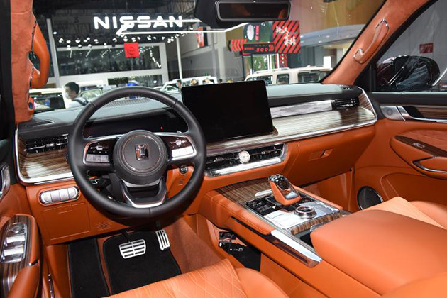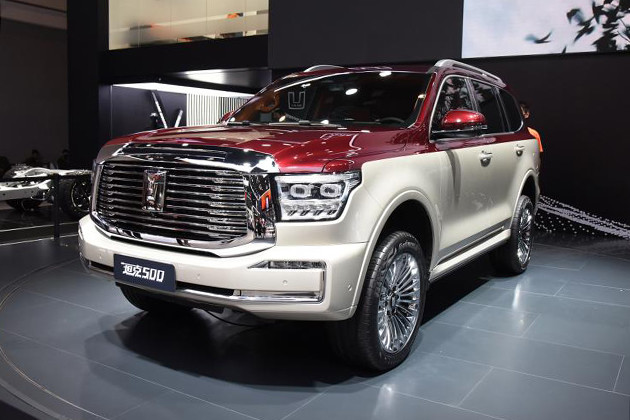 作为坦克家族第二款量产车型,坦克500在成都车展中完成首秀,此次在广州车展中将开启预售。新车延续了坦克品牌的硬汉路线,同时要比坦克300更豪华,比如外观方面更加高耸的车头、更华丽的大灯、更厚重的包围、更多镀铬元素等细节;车内木纹装饰覆盖整个仪表板及内门把手处,屏幕下方的出风口中央还设置了白色时钟等。动力方面同样给力,新车搭载长城潜心研发的3.0T涡轮增压V6发动机,其最大功率为260kW、最大扭矩为500Nm,与之匹配的纵置9挡手自一体变速器。