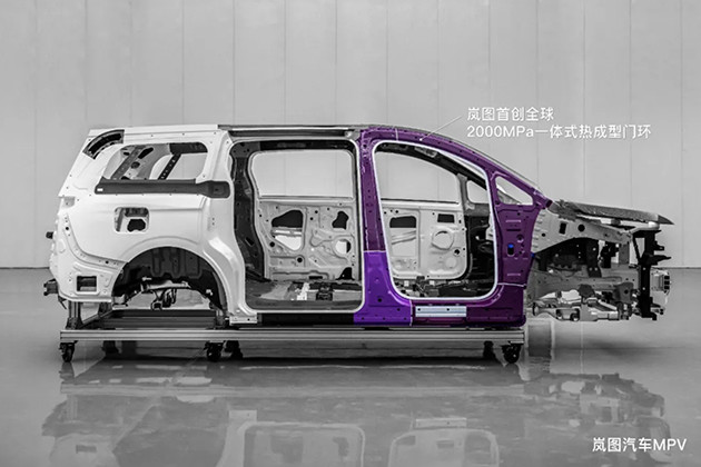 在即将开幕的广州车展中,岚图全尺寸MPV将与我们见面,它被官方称为同级别里性能最好的豪华MPV车型,对标车型将会是丰田埃尔法。新车在造型设计方面将与岚图FREE相近,比如格栅样式和贯穿式日行灯等。该车依旧会推出纯电动版和增程式混动版可选。在车身安全方面,岚图MPV将采用2000MPa铝硅涂层车门防撞梁,进一步提升车辆侧面的安全性能。此外,新车还首创贯穿式铝质门槛加强梁,减少侵入量和速度,对司乘人员和电池起到保护作用。在车身结构方面,岚图MPV将采用D柱车身填充结构增强材质,将增强胶块预先填充在车体D柱中,通过涂装烘烤后受热膨胀,将各个单独的承载钢板粘接成一个复合整体结构,从而增强车辆使用的耐久性能。岚图全新MPV车型整车高强度钢使用比例70%,热成型钢占比达到23.6%,并通过车身结构优化、新型复合材料运用、制造工艺提升等,打造超高强笼式座舱骨架,力求打造MPV领域的高安全车型。