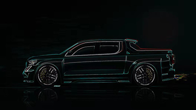 在皮卡圈越玩越起劲的长城炮将在本届广州车展中带来一款“超跑皮卡”。新车前脸采用了十分夸张的运动化设计风格,比如扁平的前进气格栅、犀利的大灯组以及夸张的分段式进气口等。另外,大尺寸轮圈的加入让该车更带感。该车尾部采用双边共四出的排气布局,搭配中央底部的扩散器,极具视觉张力,同时长城炮的LOGO出现在尾箱盖处,具有很高的辨识度。