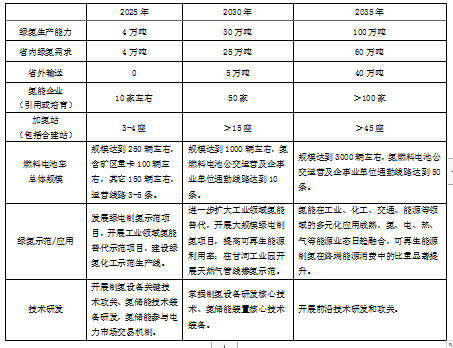远期(2031-2035年):氢能产业壮大期。形成国内领先的氢能制取、储运和应用一体化发展产业集群,构建氢能产业高质量发展格局。到2035年,绿氢生产能力达到100万吨,实现绿氢在工业、交通、能源等领域大规模应用,远距离纯氢外输管道规划建设取得实质性进展。引进或培育氢能企业超过100家,绿氢全产业链产值达到500亿元。