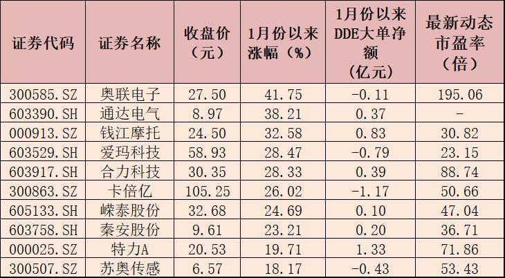 1月份以来,申万一级汽车行业指数逐渐走强,截至1月12日收盘,汽车指数在过去的8个交易日累计上涨6.01%,大幅跑赢同期上证指数(涨2.40%),个股来看,汽车行业内260只个股中有175只个股期间跑赢大盘,占比近七成,其中,奥联电子、通达电气、钱江摩托、爱玛科技、合力科技涨幅居前五,期间累计涨幅均超28%,表现强势。
