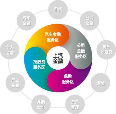 在金融事业部的整合下,上汽的金融板块分成了汽车金融、公司金融、股权金融和保险销售4个板块,其中,汽车金融是为经销商及汽车消费终端客户提供融资服务;公司金融的职能是为上汽集团成员企业提供资金存贷、结算、票据、外汇及各类代理服务等。