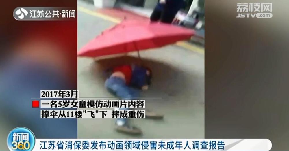 2017年3月,一名5岁女童模仿动画片内容,撑伞从11楼"飞"下,摔成重伤;