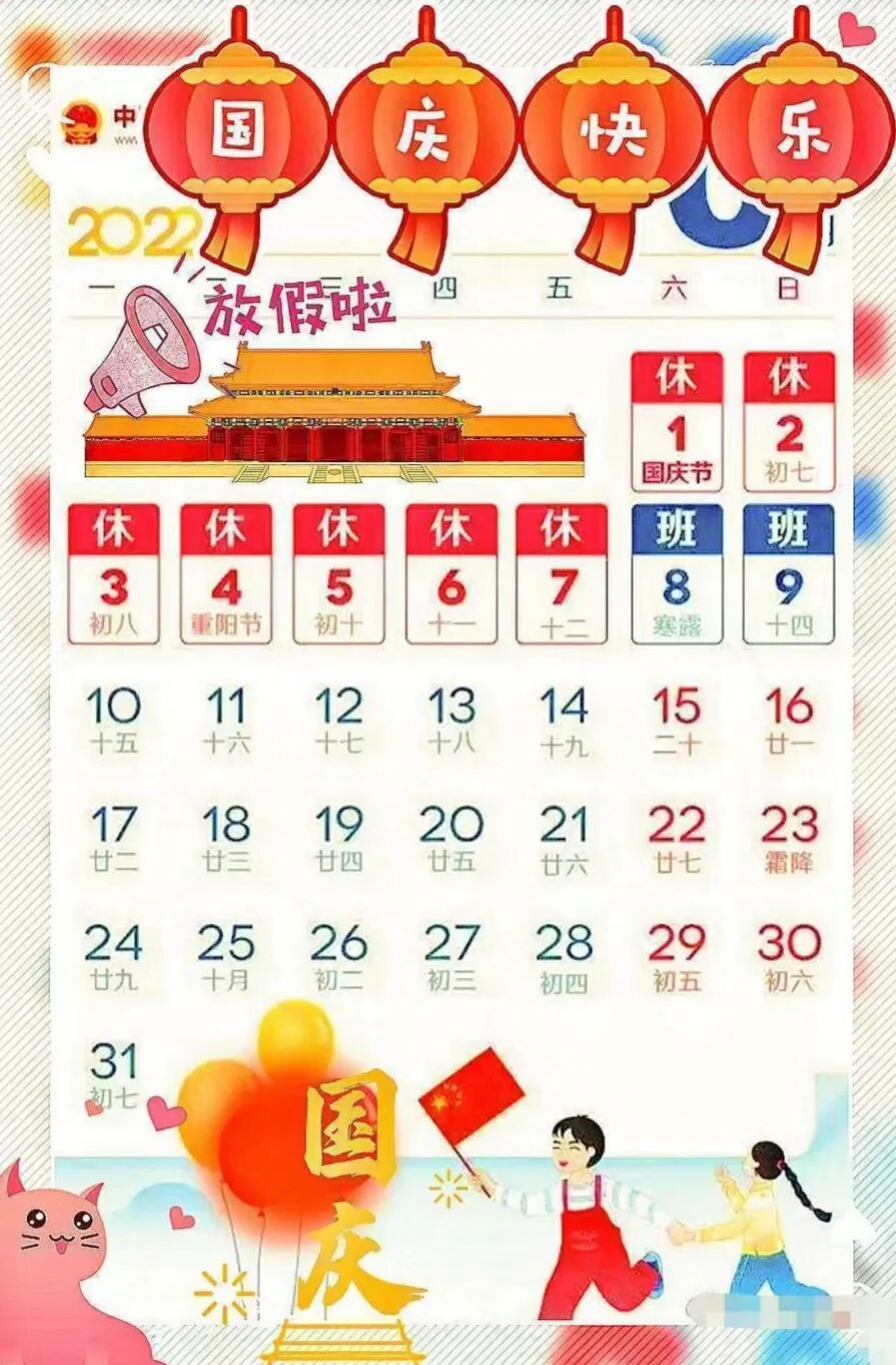 你们好!一年一度国庆节即将来临,西津小学全体教职工祝您节日愉快!根据国家节假日放假规定及我校具体情况,现将 2022年国庆节放假的有关安排通知如下: