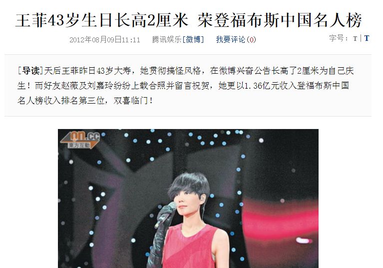 这是王菲新浪微博的语录,如果不是女神亲口爆料,简直不敢相信成年后我们还能够长高。诺,大家还可以看看下面的新闻报道!