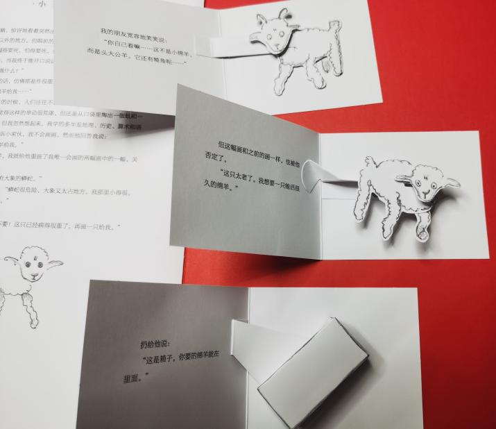 第一只,小王子说,不,这只羊好像生病了,他又画了第二只,不,你瞧,它是一只山羊,它是有角的。接下来他又画了一张,小王子很失望,说这只羊太老了。那接下来飞行员就失去了耐心,因为他急着要把发动机拆下来要修理飞机,所以他就胡乱地画了一张。这是一个纸盒子,他跟小王子说,这是只箱子,你要的绵羊就在里面,但我惊异地看到我的小法官的脸上顿时放出光来,“我就要这一个!你说这只绵羊要吃很多草吗?”奇妙的事情发生了,这两个人立即在这个时候达成了共识,所以小王子跟飞行员的相遇,就是从彼此理解开始的。