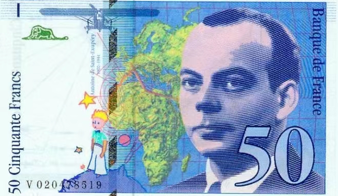 作者叫安托万·德·圣-埃克苏佩里,他是法国人。他赢得了所有法国人民的尊敬和喜爱,法国的第一大城市是巴黎,在巴黎有一个类似先贤祠堂一样的地方,对这个国家做出卓越贡献的人,是可以把名字放进这个祠堂里的。迄今为止,这个祠堂里有72个人,其中就有《小王子》的作者圣-埃克苏佩里。不仅如此,在他去世后,为了纪念他,他也被印在了50法郎的纸币上。去看他的墓志铭,上面只有一行话,说:“他是一个诗人、作家、画家、飞行员。”他参加过第二次世界大战,后来他开着飞机,在一次执行任务的时候,消失在蓝天中再也没有回来。