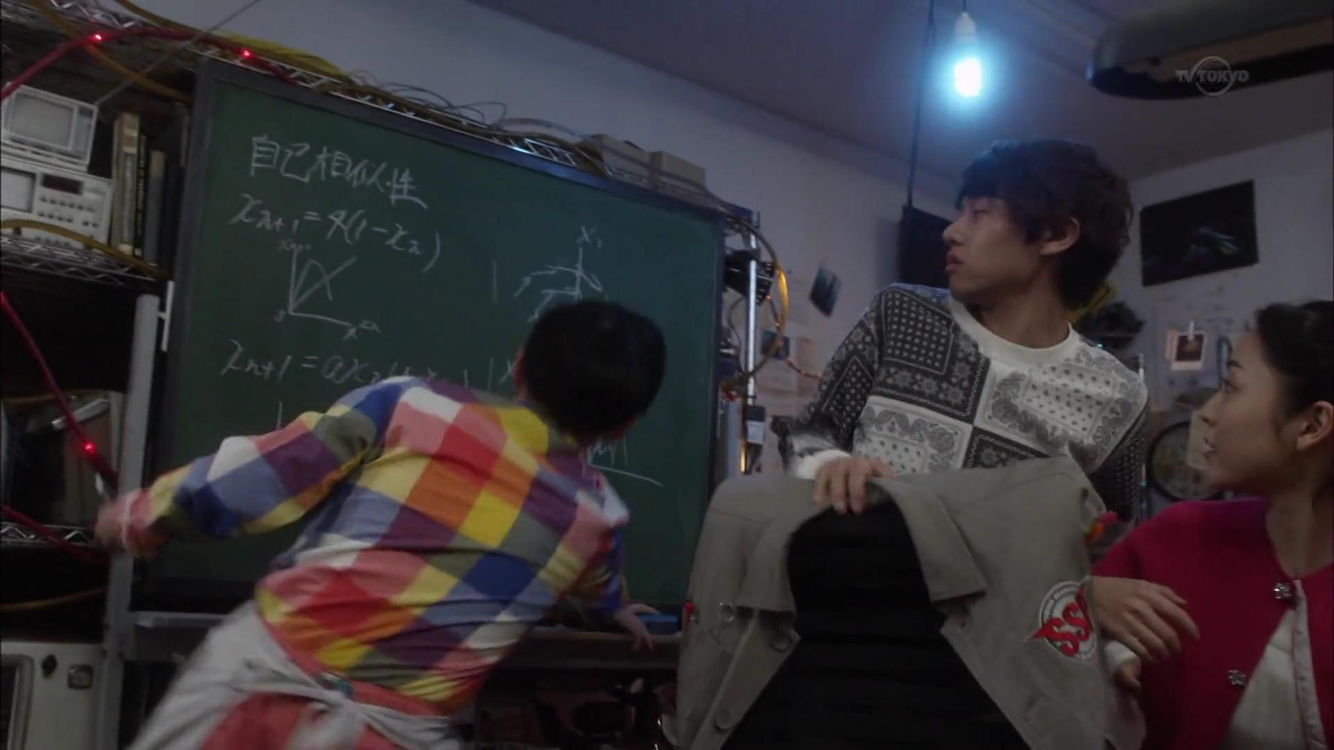 此处松戸君背后的黑板上写了个“自己相似性”,并写了两个常差分方程