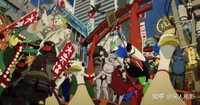 游行队伍中还有一支队伍是这样的,其中有自由女神,日本的神像,既有上帝也有佛祖,而簇拥在他们周围的却是穿着JK、女仆、比基尼的各色人等。