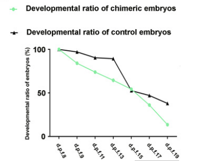 例如,灵长类和啮齿类,灵长类和有蹄类动物之间都有超过9000万年的进化距离。嵌合体的发育,受到明显的阻碍。