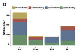 研究表明,猴子的嵌合体细胞比人类多能干细胞具有更可靠的谱系分离,并且,猴子的胚胎环境可以影响人类细胞的转录表达。