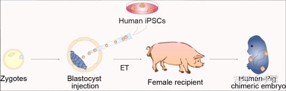这就是中启内光的囊胚互补技术,也就是在该动物囊胚期时将其他物种的iPSC混入到这个囊胚中,使其实现嵌合,最后该动物体内长出其他动物的器官。
