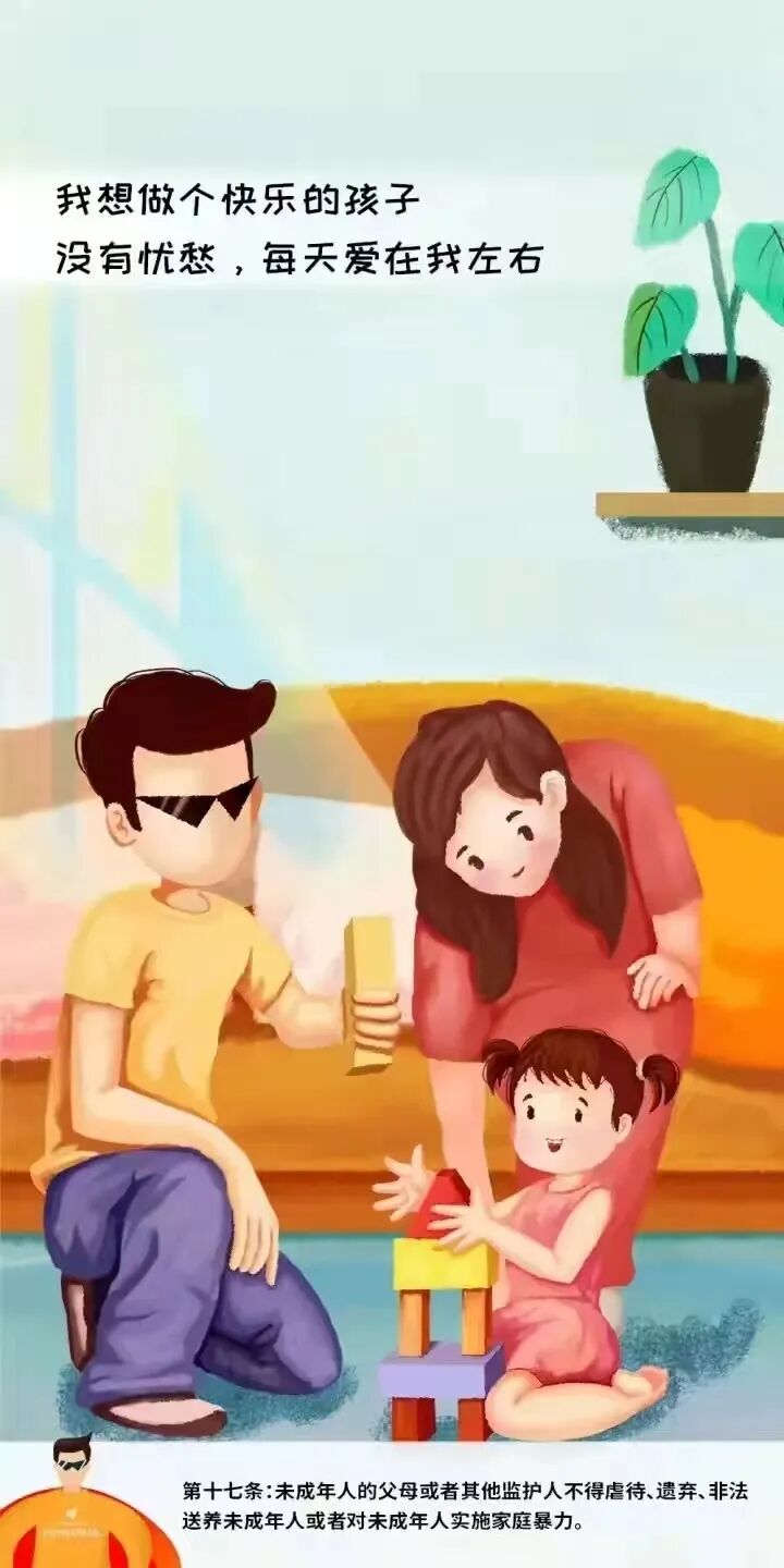 四、如果发现未成年人身心健康受到侵害,或者其他合法权益受到侵犯,请您及时了解情况并采取保护措施;情况严重的,请立即向公安、民政、教育等部门报告。支持未成年人事业,促使他们健康快乐成长。