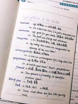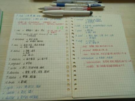 在这个过程中如果有不认识的单词就马上把它们记到一个专门的笔记本上,并造一个句子。这样我们可以在具体的语境中去记这个单词,效果会比我们单纯的记这个单词的发音和意思好很多。