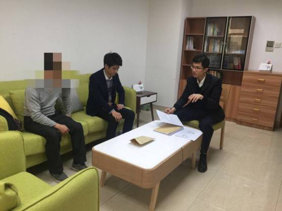 图为我院未检工作人员对嫌疑人父亲进行社会调查谈话