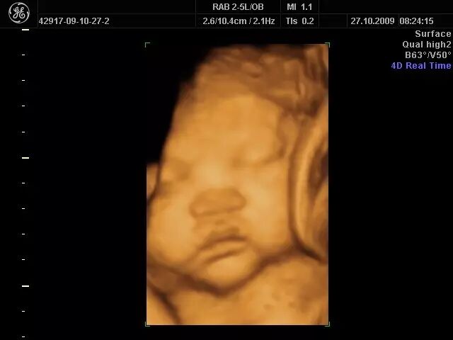 fetus(胎儿)。这是四维彩超下的胎儿。大多数胎儿相册都是利用四维彩超图片制作的。