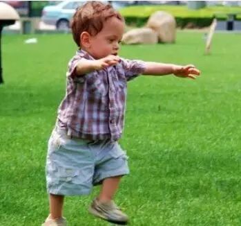 toddler(幼童;蹒跚学步的孩子)。toddle是动词,如图所示,跌跌撞撞地学步。