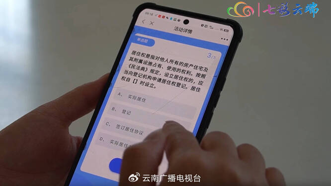 尤其是在云南各少数民族村寨,边境一线,当地优化普法流程,结合七彩云端APP民法典在线答题活动,通过"法律明白人"、驻村工作队员、边境派出所社区民警,将法律知识带到基层群众身边,扎实推进普法强基补短板专项行动,切实提高基层一线群众尊法、学法、守法、用法的意识。