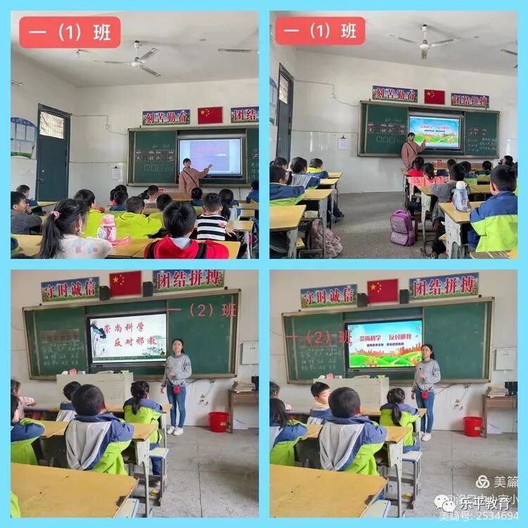 班会课上,班主任们利用PPT播放反封建迷信图片和宣传短片,利用真实的新闻事件向学生宣传封建迷信对社会造成的巨大危害和犯罪行为。