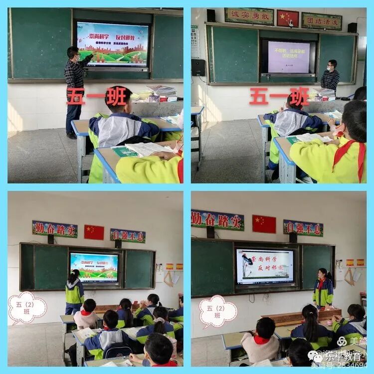 各班级通过内容丰富的主题班会,使学生认识到未成年人进入宗教场所的危害性,让孩子们远离宗教,崇尚科学。
