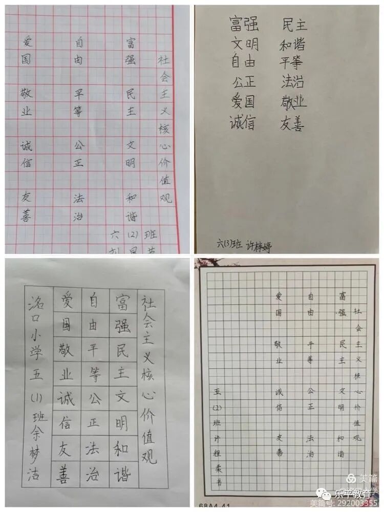 通过宣传教育,引导学生从自己做起,从小事做起,从身边做起,将社会主义核心价值观根植于师生心中,传递德行与善举,弘扬正能量,践行真善美。(洺口小学 戴惠佳)