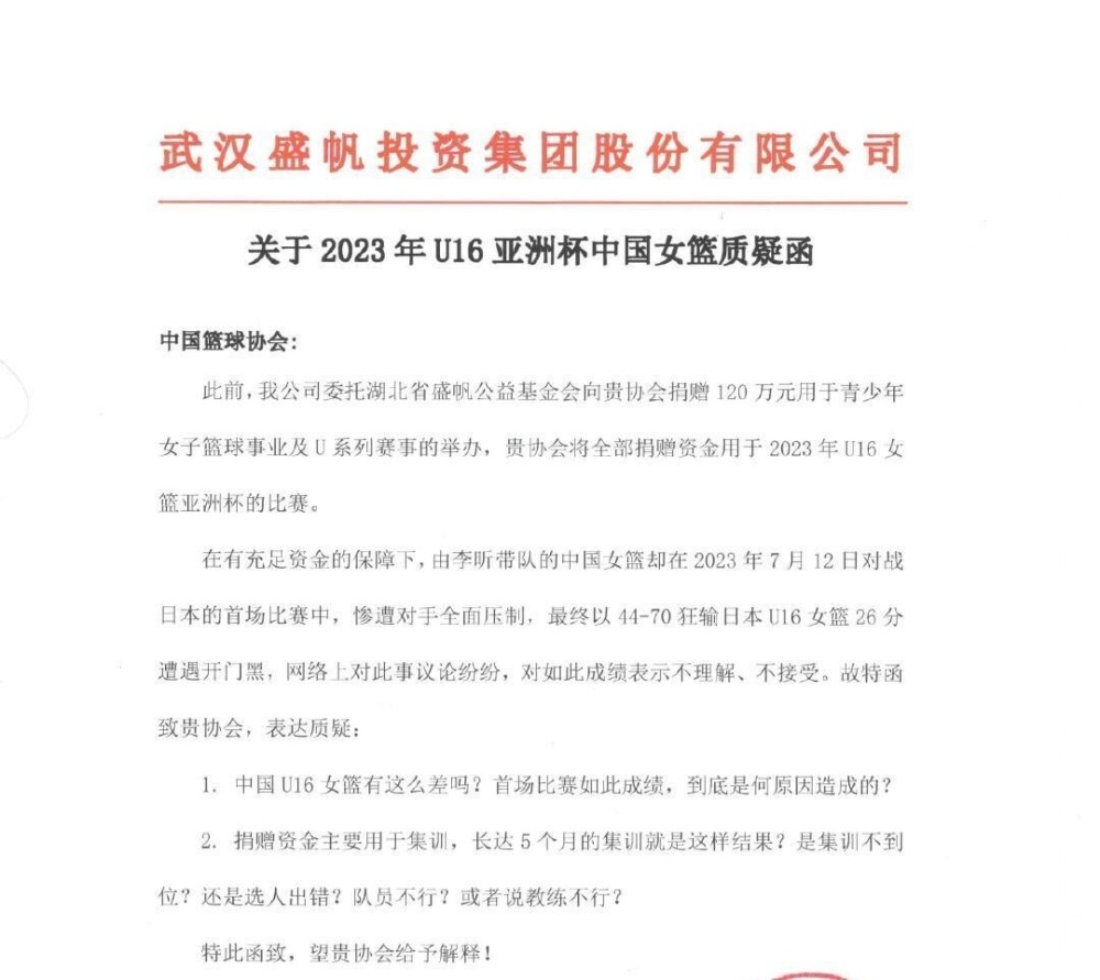 事实上,这支U16女篮从第一场小组赛就饱受质疑,当时她们惨败日本26分,直接导致赞助商翻脸,质疑球员、教练水平有问题,也抨击中国篮协。这家赞助商此次赞助120万,他们不满这支这支U16女篮集训长达5个月,然后仅打出如此惨淡的表现。