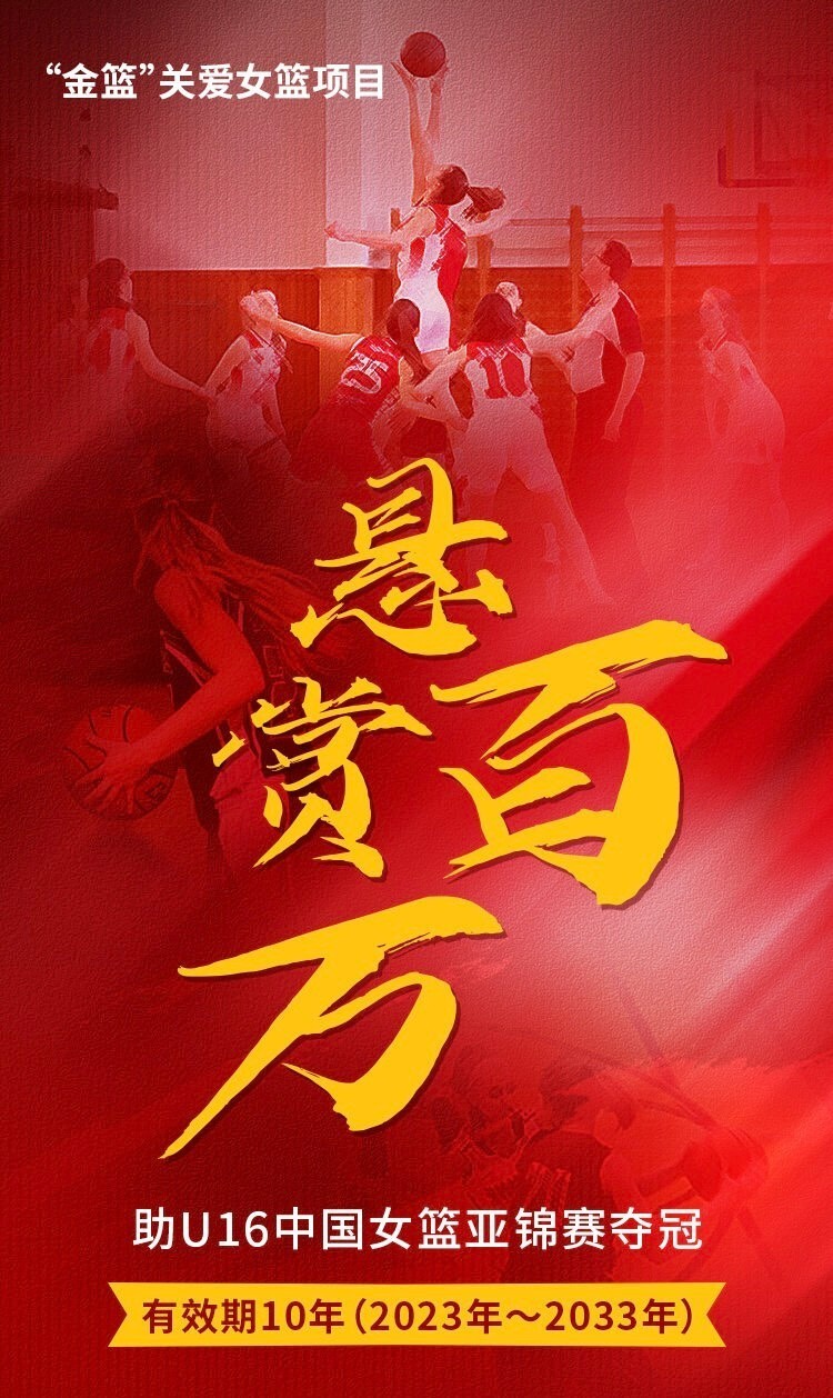 为了让U16女篮能够重新振作,赞助商甚至启动一个“金篮”关爱女篮项目,悬赏百万,希望帮助中国U16女篮重新触及冠军,有效期达到10年,也就是在2023年到2033年之内夺冠都可以拿到这笔百万奖金。