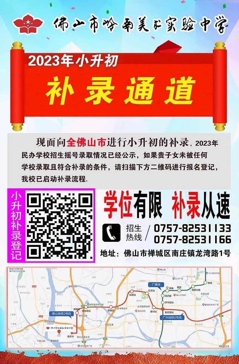 我校七年级新生注册工作进展顺利,现已启动补录流程,面向全佛山市招生,如果贵子女未被任何初中录取或未参与民办学校报名,请扫描下方二维码进行报名登记,学位有限,补录从速!