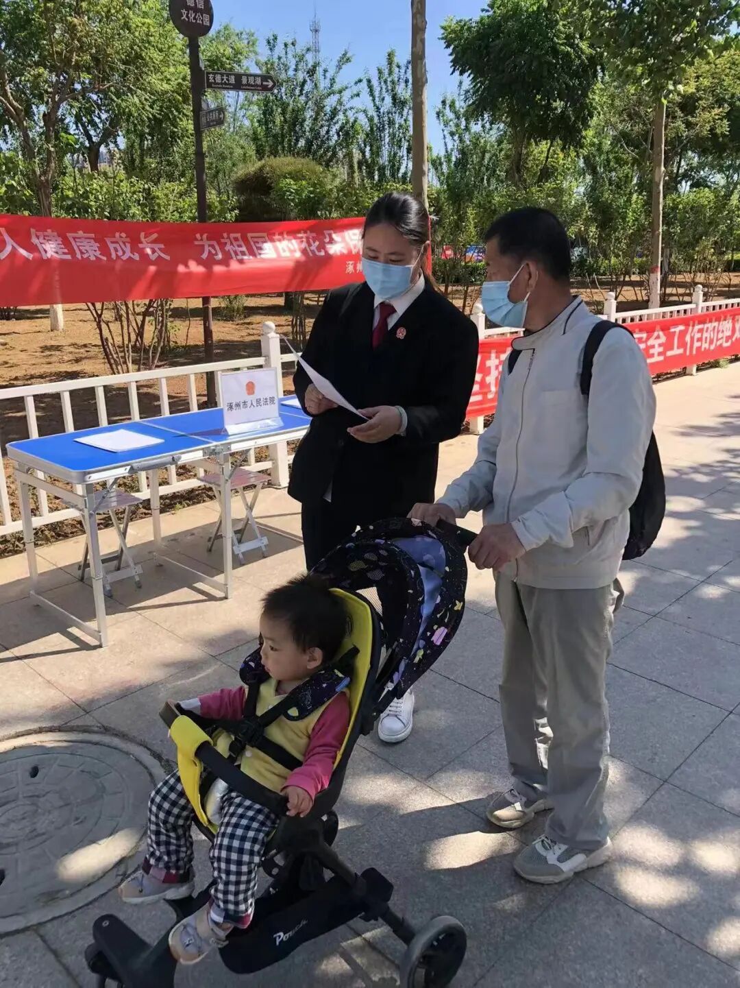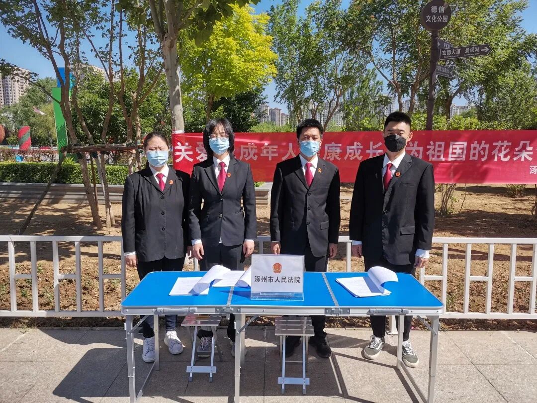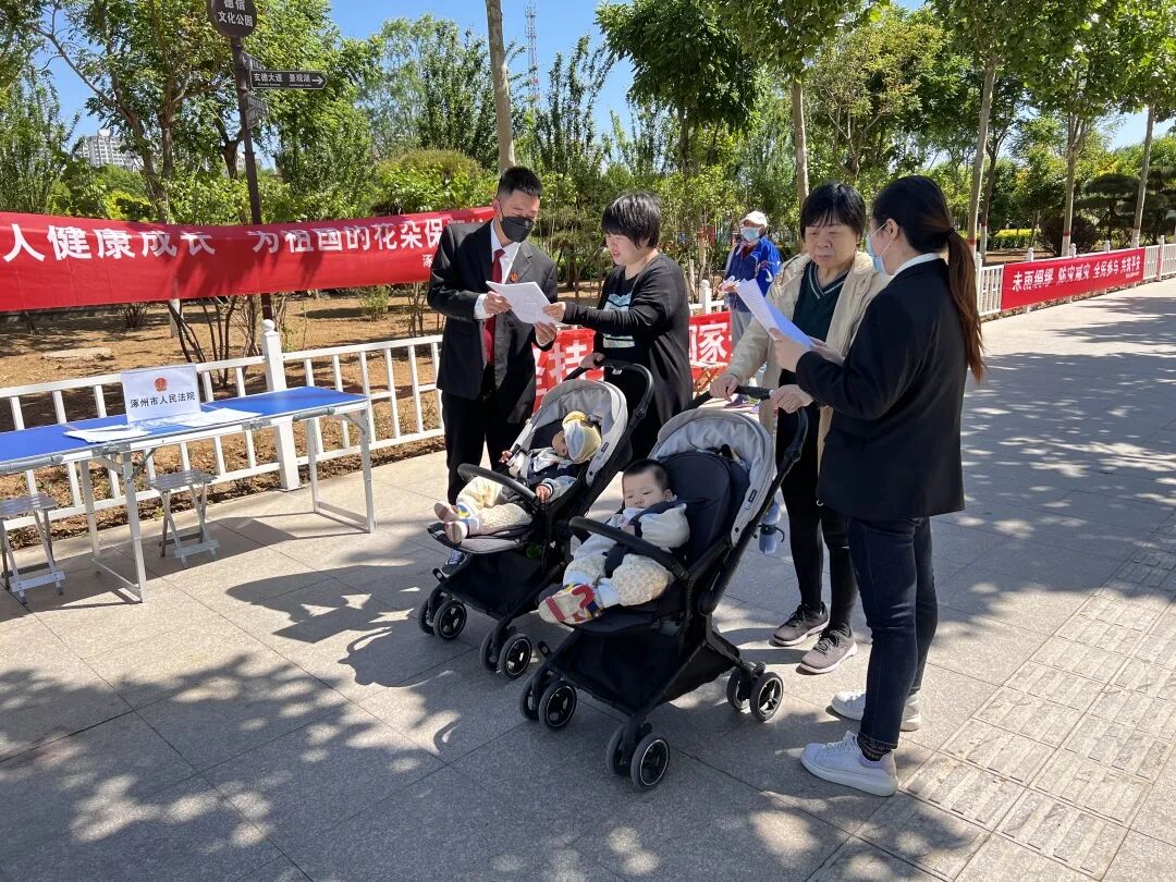 在国际六一儿童节来临之际,为深入学习贯彻《未成年人保护法》,大力营造全社会关爱、保护未成年人健康成长的浓厚氛围,2022年5月13日上午,涿州市人民法院刑事审判庭干警在涿州德信公园开展了以“关爱未成年人健康成长,为祖国的花朵保驾护航”为主题的普法宣传活动。