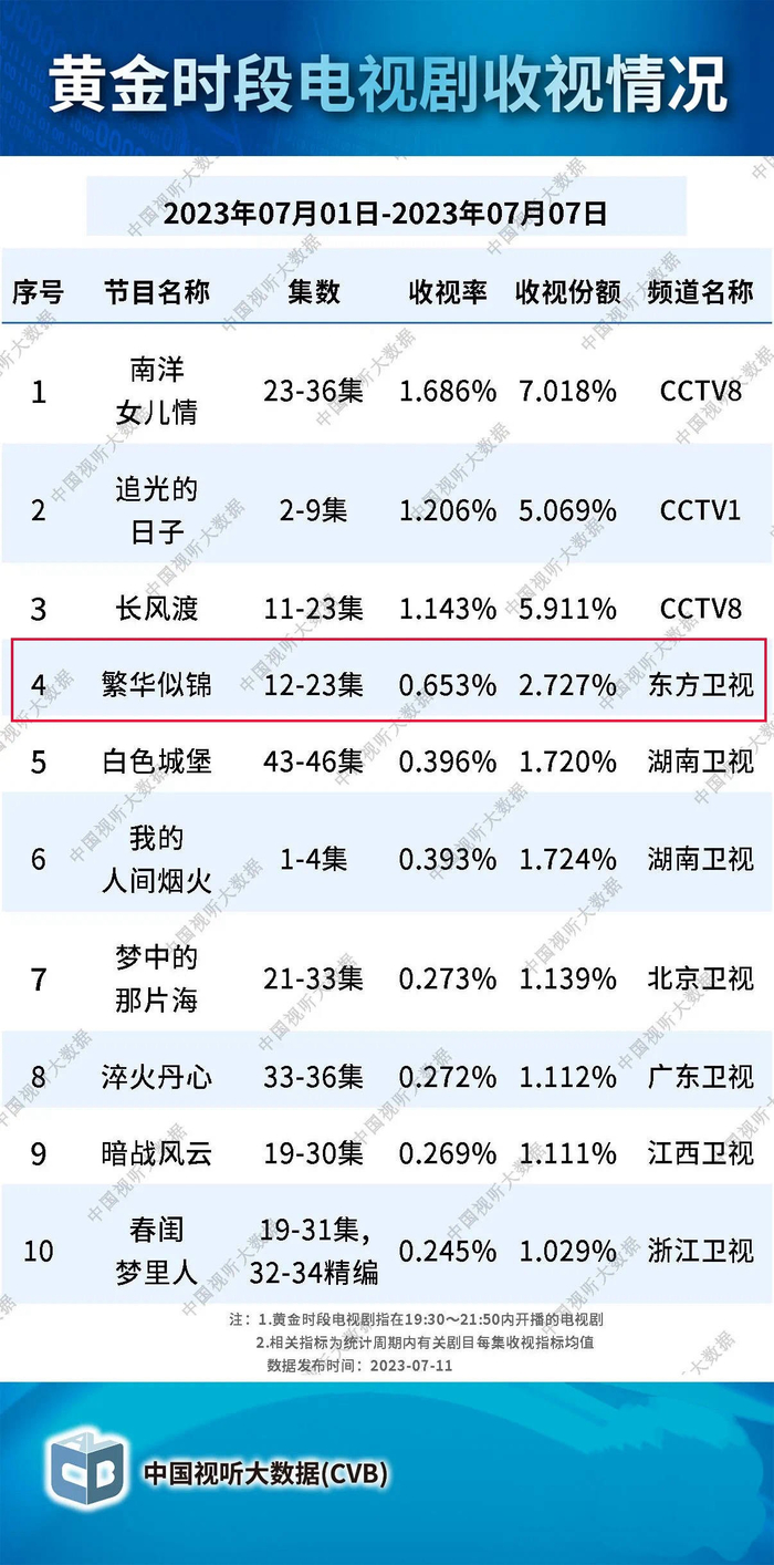 近日电视剧市场进入了竞争激烈的暑期档,电视剧作品也如雨后春笋般纷纷播出。纵观收视率,东方卫视热播剧《繁华似锦》取得不俗表现。