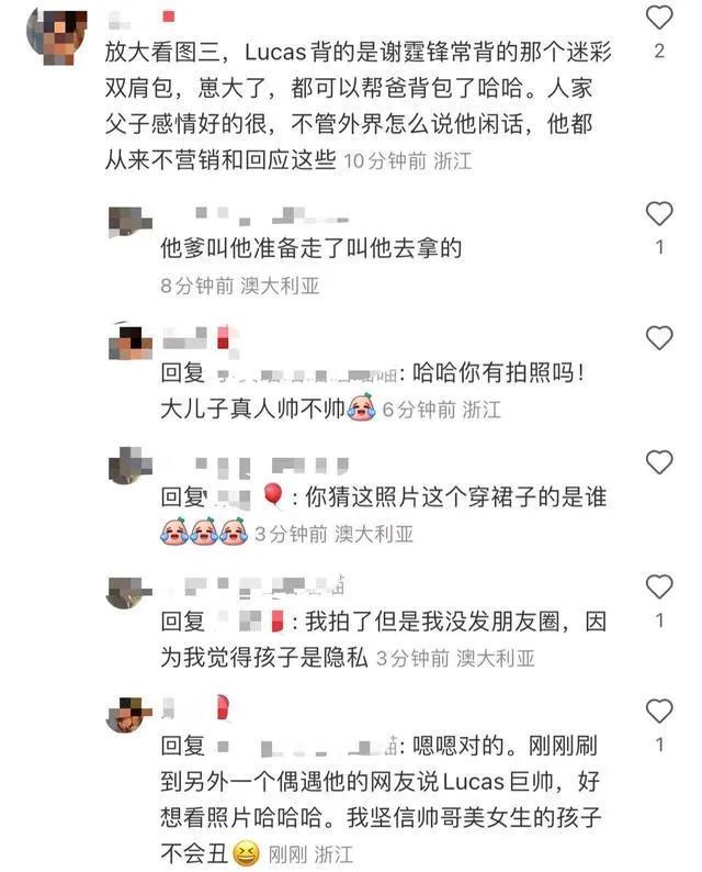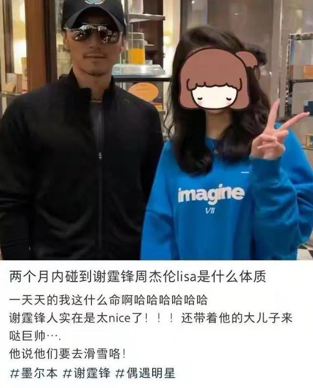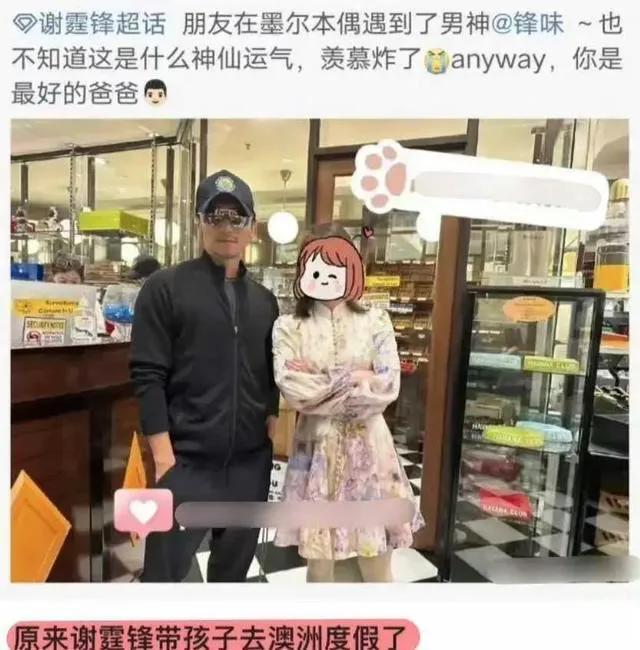 分手风波没过去几天,便有多位网友在澳洲偶遇了谢霆锋。在7月15日,多名网友发布了在澳大利亚墨尔本偶遇谢霆锋的动态,并晒出了合影,网友透露谢霆锋本人非常nice,值得一提的是,这次是带着大儿子Lucas来滑雪的,并称赞大儿子Lucas巨帅。