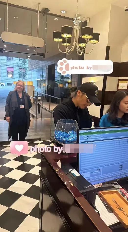由于此次出行Lucas并没有特意躲避镜头,所以正面照也随之曝光。