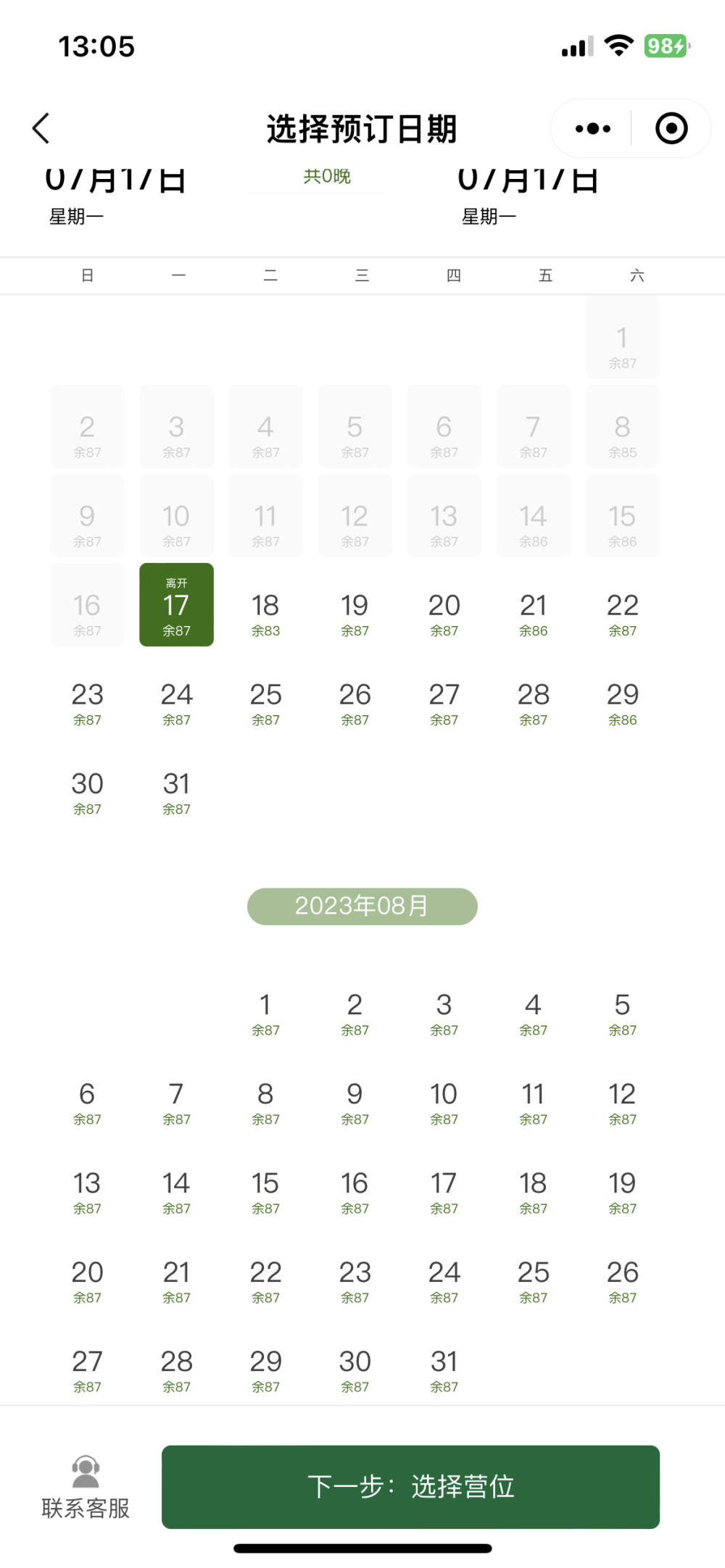 上海某营地的预订小程序显示营位预订情况惨淡。 网络截图