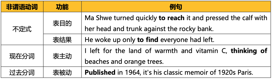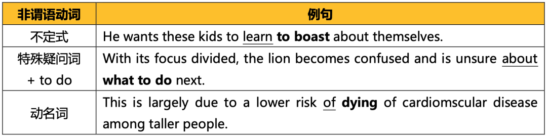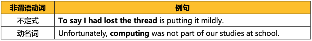 非谓语动词还可以做名词性成分,即主语、宾语、补语(表语、宾补)、同位语等。