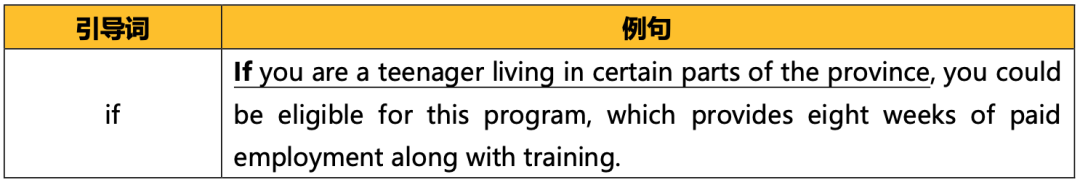 其他引导词:as long as、given that、in case (that)、in the event that、lest、once、provided that、unless、the…the…