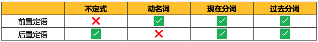 动名词做定语,相当于名词做定语。不定式、分词做定语,被修饰的名词一般是非谓语动词的逻辑主语。往往可以改写为定语从句,用公式表示为(在 V = be + V非 成立的多数情况下):