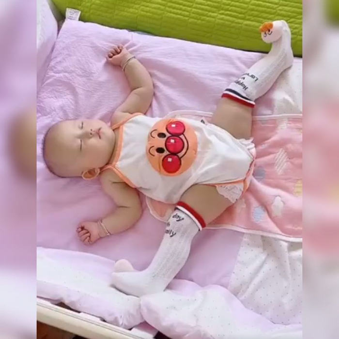 说起宝宝睡觉的姿势可谓是千奇百怪,而且有很多姿势相信家长都很好奇他到底是怎样摆出来的,就像视频里的这个孩子,这个动作简直是非常有难度,但宝宝在睡觉的时候还是做了出来,视频里宝宝只有几个月大,穿着一个连体衣服一个长筒袜,睡在婴儿床上十分的安然,虽然看起来是非常得可可爱爱,但孩子的睡觉姿势却是非常的豪迈,只见孩子平躺在床上双手呈大字状,而脚上的姿势更加的放的开,因为孩子在睡觉的时候劈了一个叉,两只脚分别蹬向床边,看起来就像在杂耍,而妈妈看着之后也是笑了两下宝宝的这个姿势,随后就帮宝宝把脚收了回去,然后把手也放了下来,让宝宝变成了一个平躺的姿势,看来宝宝睡觉的姿势都是非常独特的。