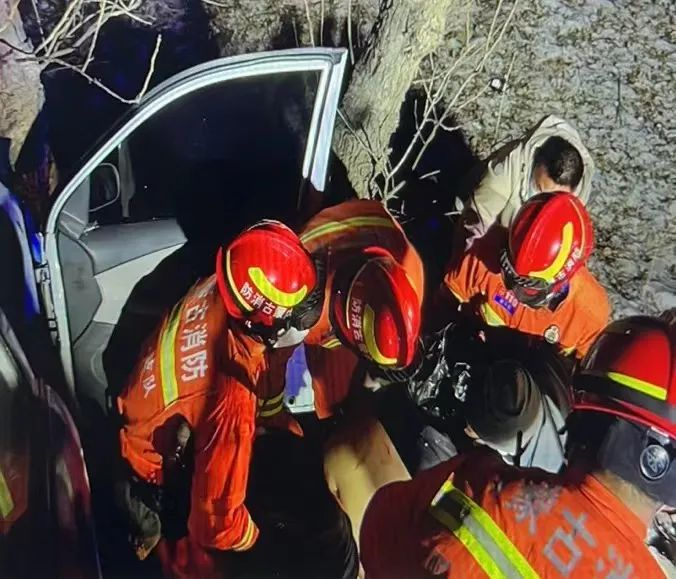 12月25日,莫旗环城西街消防站接到报警称:莫旗尼尔基镇小莫丁路段两车相撞1人被困,消防救援站接到报警后,消防救援人员立即赶赴现场实施救援。